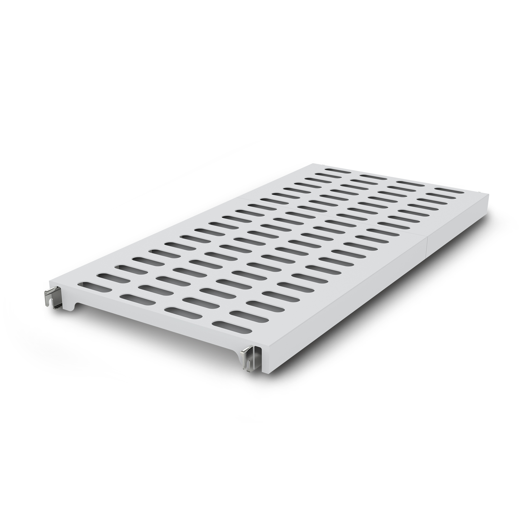 Grating made of polystyrene segments with 3.0 × 1.0'' (75 × 25 mm) hole pattern on aluminium carrier bars.