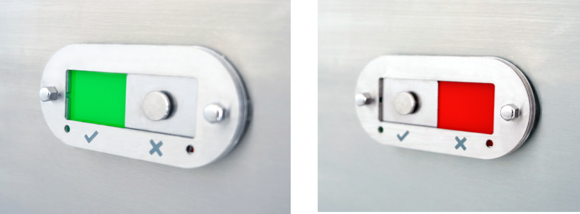 The new status indicator for medical carts puts an end to the guesswork. The high-quality stainless steel panel has two coloured areas (green and red) that clearly indicate the status of the cart.