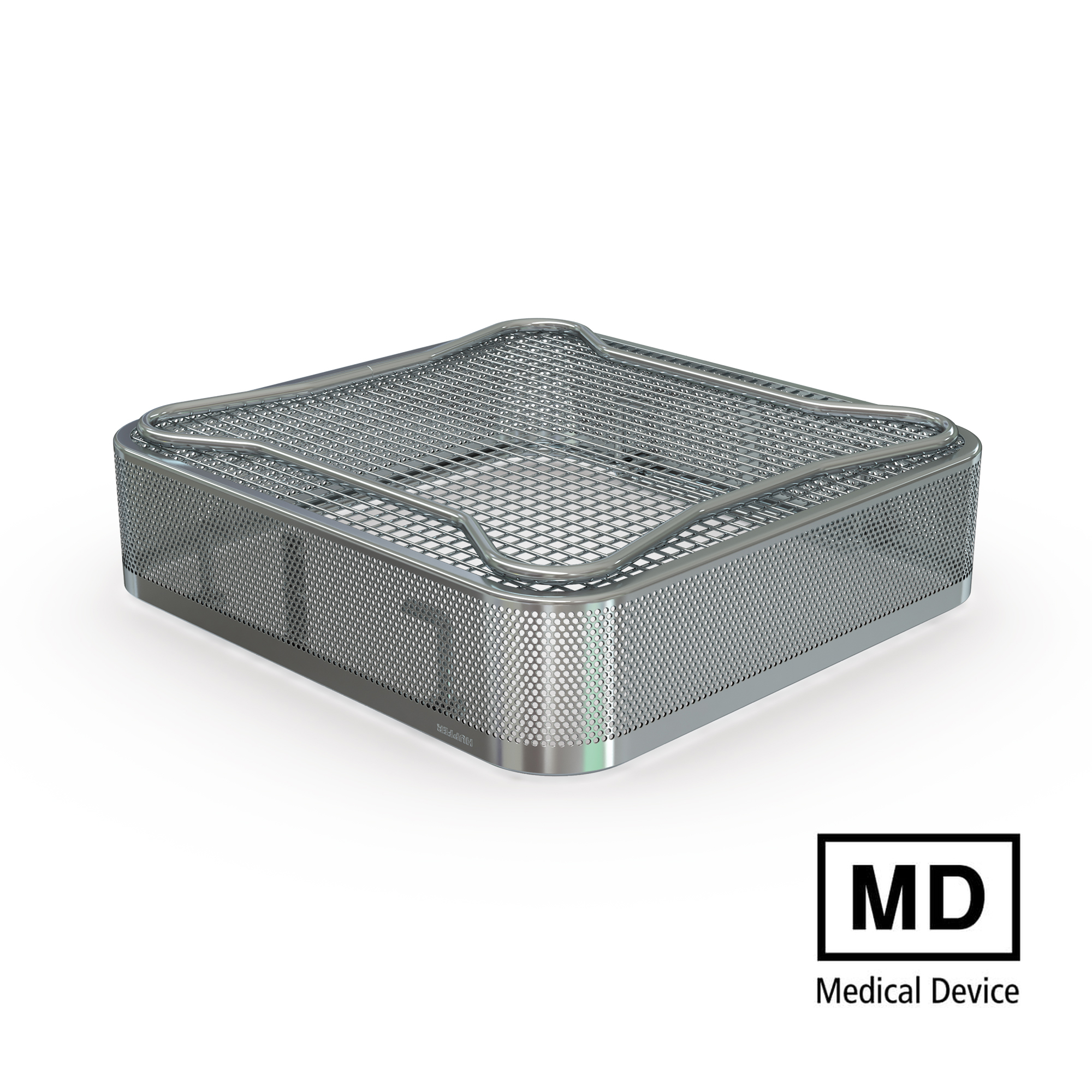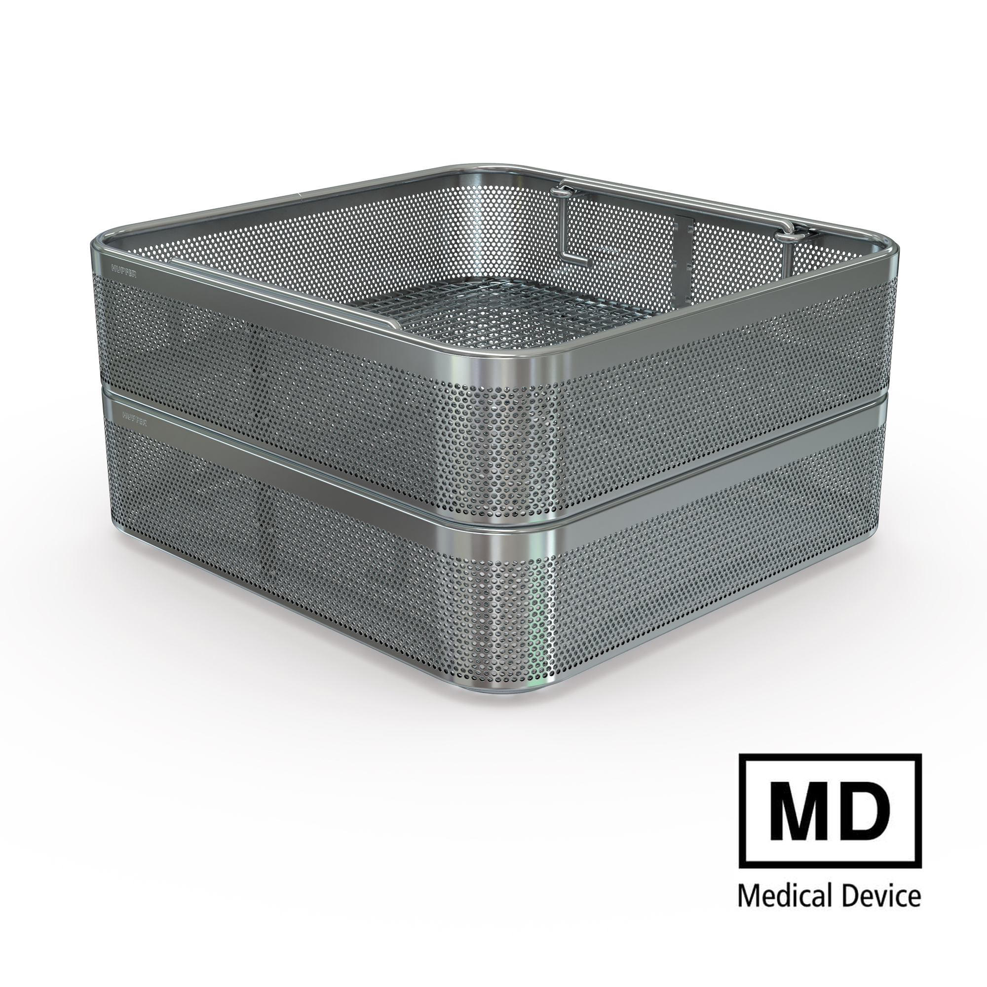 Basket in hygienic design for easy cleaning, made of high-quality, electro-polished stainless steel round material, with walls made of finely perforated plates and base made of welded mesh. Special shape of base frame allows stacking of baskets onto one another. Easy handling thanks to two interior chest handles at the face sides.