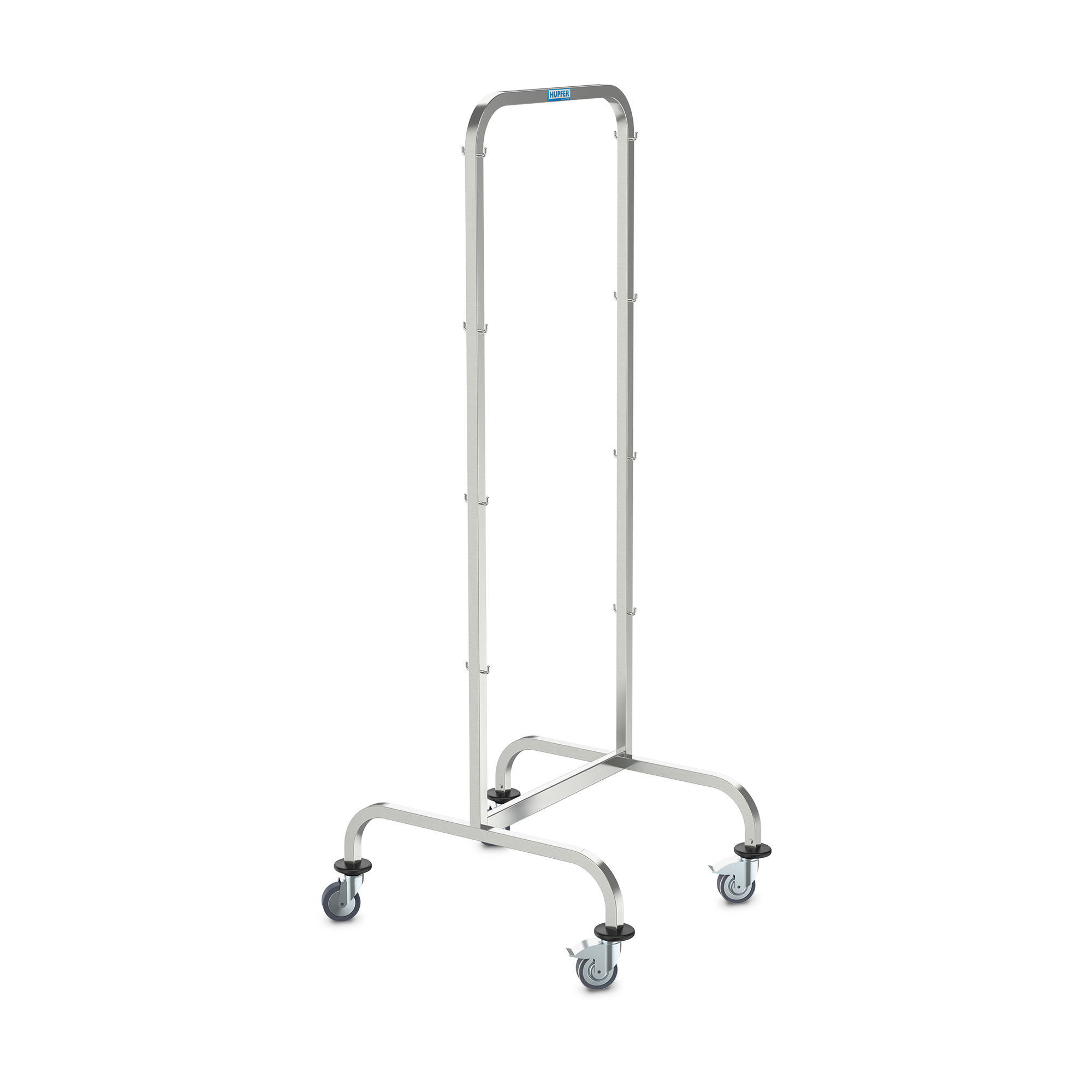 The stainless steel open hook trolley is used for convenient transport and user-friendly organisation of medical supplies in accessories attached to it. The Hupfer hook trolley ensures easy handling and efficient transport processes in any medical working environment. The all-round welded frame made of stainless steel square tube with curved upper corners is particularly torsion-resistant and robust. The frame also serves as a push bar and allows the accessories to be easily attached in the configuration required. Firmly welded pairs of hooks make it easy to attach appropriate accessories such as such as sterile goods baskets. Thus equipped, the hook trolley allows quick access and a clear overview of the supplies to be provided. The high-quality design guarantees optimum hygiene for demanding environments. The base of the trolley made of square tube with rounded corners and four swivel castors with two locks ensures smooth movement and precise manoeuvring. The hook trolley is available in different versions, with single, double and triple side loading, each with different capacities.